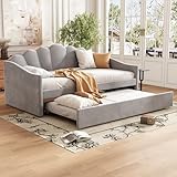 - Funktional und stilvoll: Dieses Tagesbett-Schlafsofa bietet mit seiner grauen Leinenpolsterung ein...